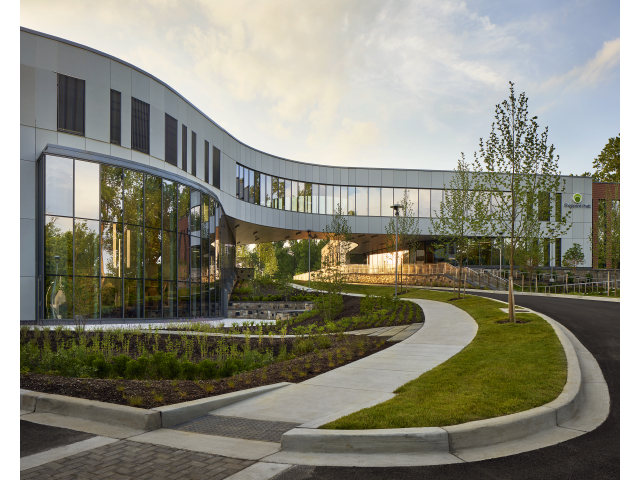 Jurors praised the building’s emphasis on design for wellbeing, noting that the spaces support people in showing up as their “best selves.” The lobby and greenspace were highlighted as inviting and well-executed, contributing to a positive user experience.  The building’s form and subtle glazing details were appreciated, with jurors noting an effort to do something interesting with the shape, even if understated. 100 Forge was celebrated for its holistic approach—blending environmental stewardship, wellness-focused design, and architectural refinement into a cohesive and impactful project.