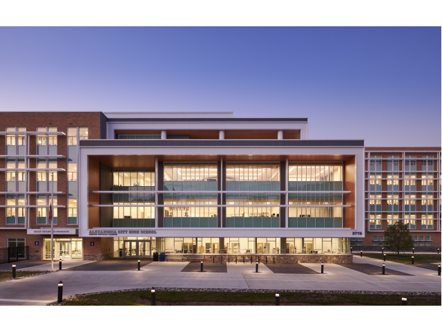 The reimagined Minnie Howard Campus of Alexandria City High School scored highly for its Net Zero energy goal pursued through strategies including photovoltaic panels and a daylight-optimized building form. Strong appreciation was shown for its commitment to equity. Jurors acknowledged the effort to elevate the architectural quality beyond the typical school building and especially appreciated the layered façade. The project was praised for encouraging a holistic interpretation of the AIA Framework for Design Excellence, going beyond sustainability to address broader social and community impact.