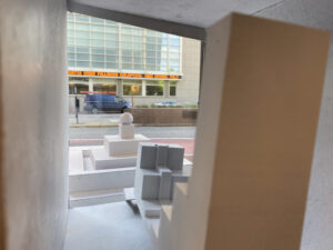 Baltimore Design School Architecture II students have designed artifacts that are based on both personal concept inquiry questions and a section of the site plan of our school’s green space. After extruding shapes from their site plans, they used their inquiry question concepts to design and 3-D model artifacts using SketchUp. Using the 3-D printed artifacts, the students designed several iterations of display cases, again using SketchUp to rapid prototype, before choosing a final prototype. They used patterns from their final SketchUp designs to build chipboard models of their display cases. Lastly, they built 3 pedestals to display their final designs, oriented in their original green space plan positions.