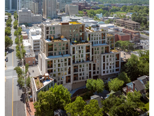 4909 Auburn was noted for its impressive sculpted massing, articulated through a series of simple geometric forms, which not only softens its visual presence but also establishes a vertical rhythm that mirrors the architectural cadence of the city. The jury also noted the cut-out window expressions that add visual interest and contribute to the building’s unique architectural character and top-tier execution. Jurors valued the integration of green roofs and the restoration of urban fabric and natural habitats, showing sensitivity to both human scale and site context. The project was seen as contributing some community benefit, particularly through its environmental strategies and thoughtful urban integration.