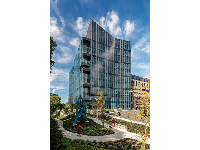 100 Forge is a landmark building for life science research. Located in Watertown, Massachusetts, this state-of-the-art, nine-story building includes 165,600 square feet of space including laboratory and office space designed for cutting edge research. The landscape design was seen as a major strength, with outdoor spaces that connect to the Charles Riverfront through walkways and trees, enhancing both community access and ecological value. The project successfully transforms a former brownfield site [2025 must be the year of the brownfield remediation projects], demonstrating thoughtful remediation and environmental sensitivity. Jurors praised the building’s emphasis on design for wellbeing, noting that the spaces support people in showing up as their “best selves.” The lobby and greenspace were highlighted as inviting and well-executed, contributing to a positive user experience. The project incorporates strong sustainability strategies, including solar energy, views to the exterior, and frit-patterned glazing that balances daylight and energy performance. The building’s form and subtle glazing details were appreciated, with jurors noting an effort to do something interesting with the shape, even if understated. 100 Forge was celebrated for its holistic approach—blending environmental stewardship, wellness-focused design, and architectural refinement into a cohesive and impactful project.