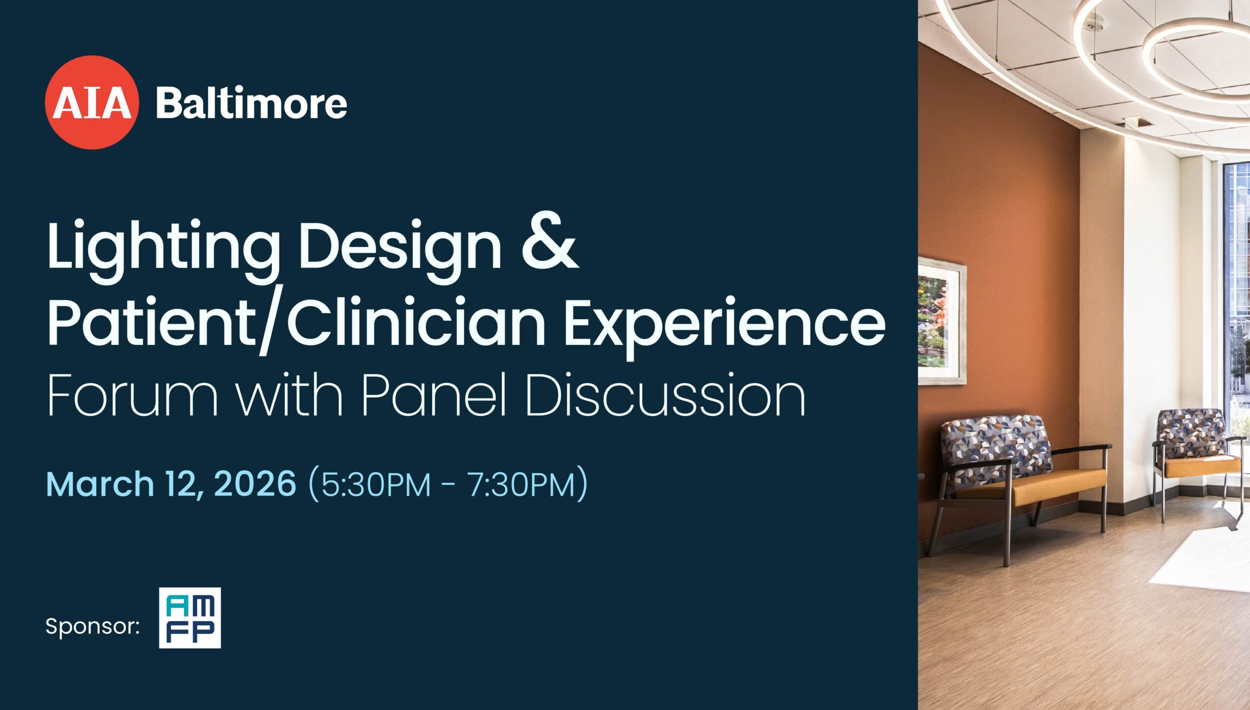 AIA Baltimore's Health and Wellness Design Committee presents: Lighting Control Design + the Patient/Clinician Experience on Thursday, March 12th from 5:30-7:30pm The event will be held at the Center for Architecture and Design. 5:30 to 6:30pm - Enjoy refreshments and meet with vendors. 6:30 to 7:30pm - Hear from our respected panelists on Lighting Control […]